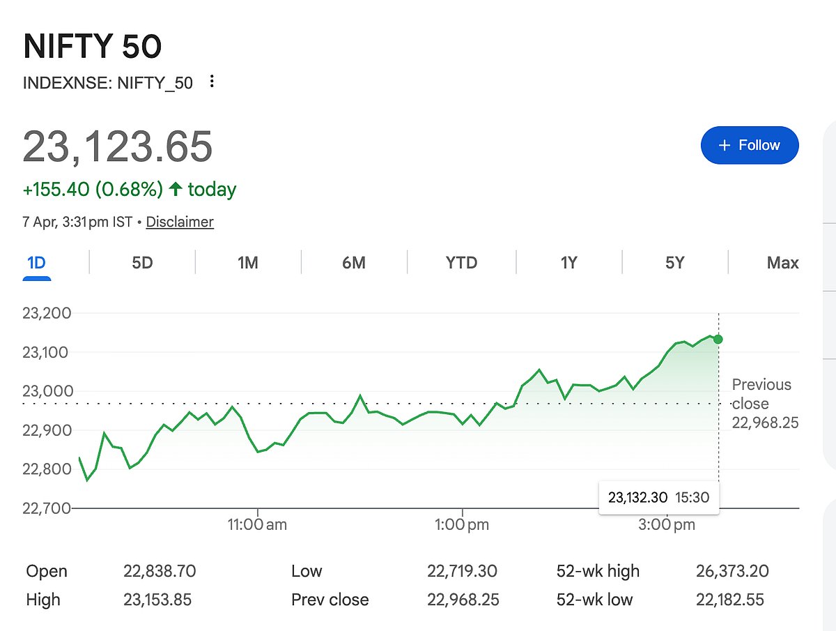 Mumbai: Indian stock markets continued their upward journey for the fourth straight session on Tuesday, supported by easing crude oil prices and positive global cues. The BSE Sensex surged 509.73 points (0.69%) to close at 74,616.58, while the Nifty 50 gained 155.40 points (0.68%) to end at 23,123.65.