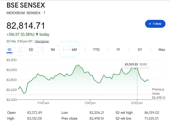 Mumbai: Indian stock markets ended Friday on a strong note. The Sensex gained 316 points, or 0.38 percent, to close at 82,814. The Nifty rose 116 points, or 0.46 percent, finishing at 25,571.