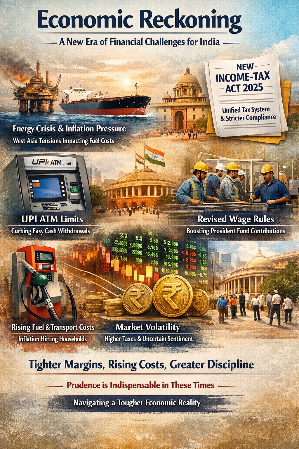 Mumbai: A financial year seldom begins with such subdued unease. As India steps into April 1, 2026, it does so under the long shadow of a distant conflict whose consequences are anything but remote. What unfolds in West Asia is no longer contained by geography; it is seeping steadily into balance sheets, markets, and the fragile arithmetic of everyday life.