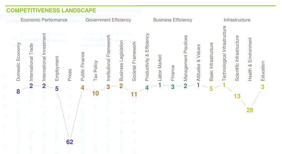 Bris said, “The best-performing economies balance productivity and prosperity, meaning they can generate elevated levels of income and quality of life for their citizens while preserving the environment and social cohesion.”