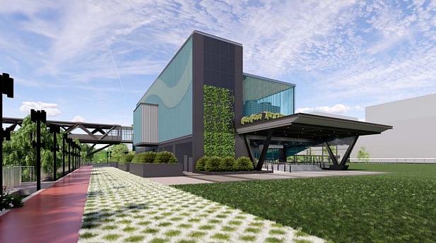 Artist impression of covered linkway from vehicular bridge to DE1 Station. | Image courtesy: LTA