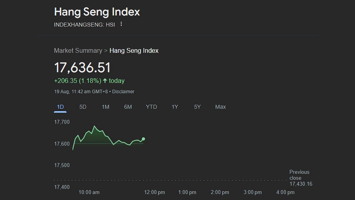 In addition, the Hong Kong-based marquee index, the Hang Seng, also made significant gains in the first half of the day's trading session on Monday, August 19.