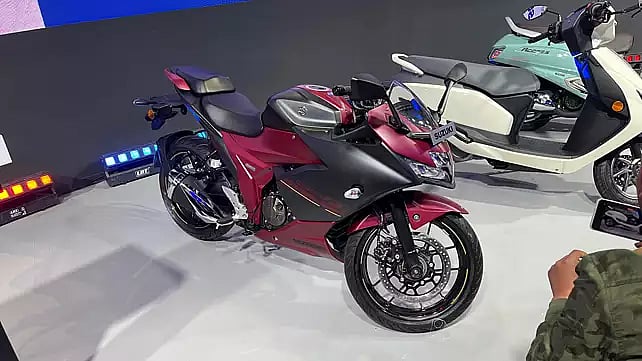 The GIXXER SF 250 Flex Fuel, Suzuki's first motorcycle in India that runs on E85 fuel—a mixture of gasoline and ethanol—was also unveiled alongside the e-Access.