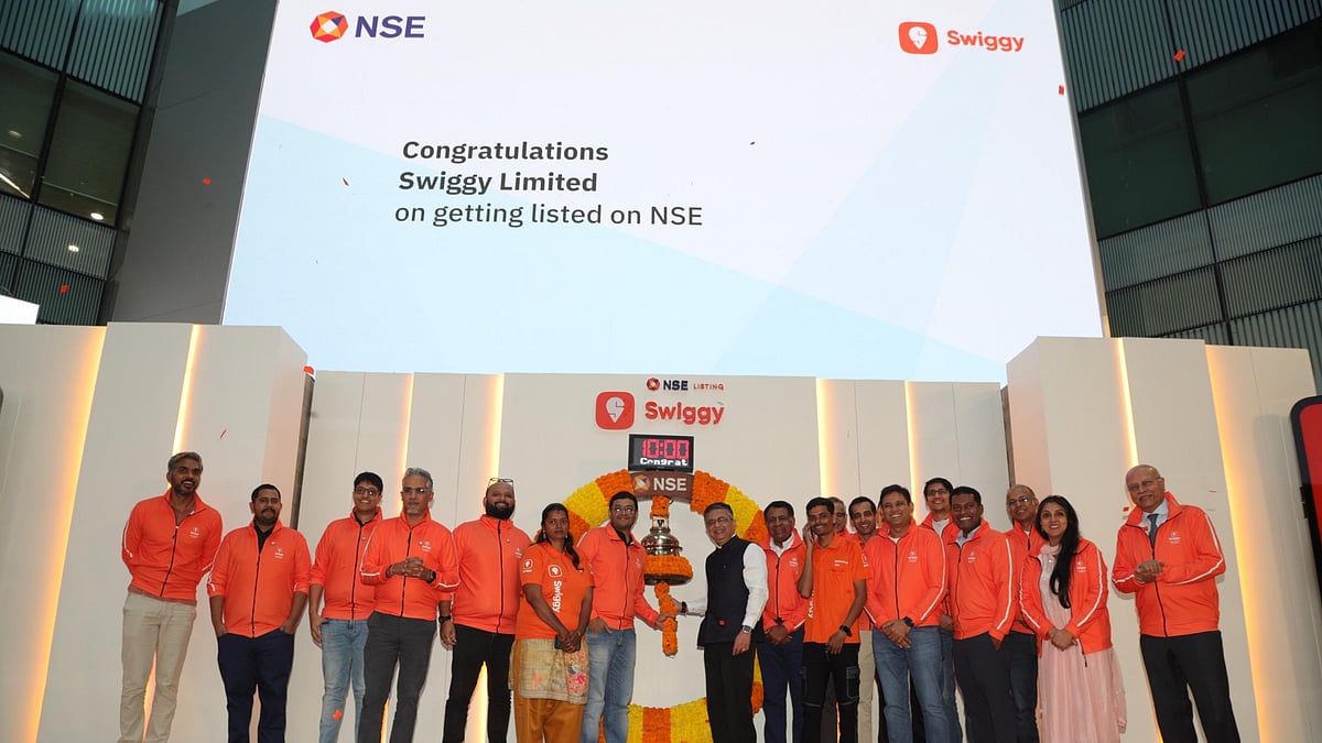 The shares of the delivery giant company Swiggy were listed on the Indian stock exchanges today at 10 am. With a listing price of Rs 412 on the NSE and a 7.7 per cent premium over the issue price of Rs 390, Swiggy shares made a quiet debut on the stock exchanges