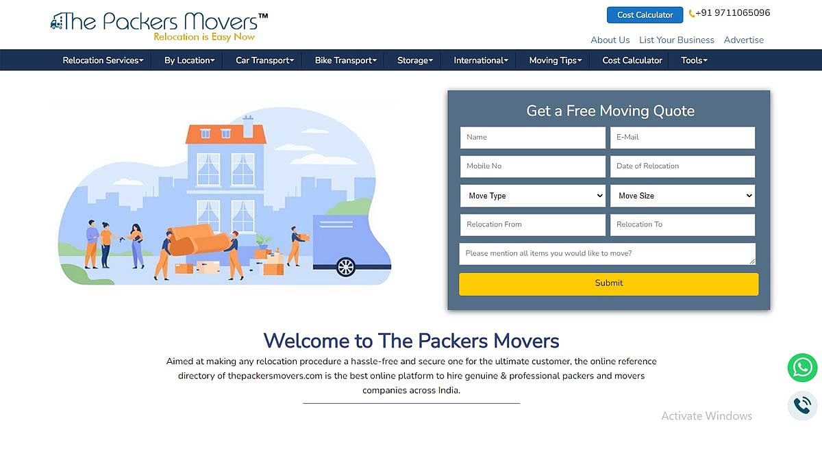 Thepackersmovers.com, based in New Delhi, India, is an online directory portal for best packers and movers. The website was launched in 2006 and so far has helped more than one lakh customers relocate. The company has grown from serving only a handful of cities to PAN India within a few years. Now, Thepackersmovers become a global name by expanding its network worldwide.