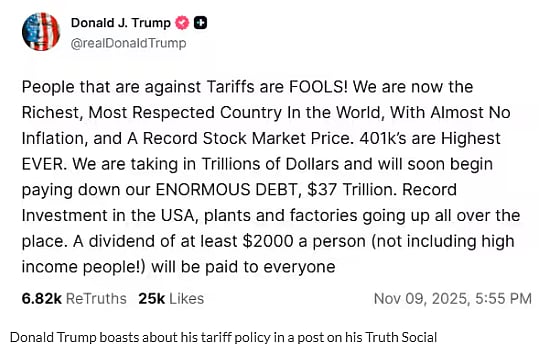 Trump’s remarks come amid growing scrutiny over his tariff program, which faces legal challenges in the US Supreme Court. On November 5, justices questioned the legality of the duties during hearings on a case aimed at overturning them. If the tariffs are struck down, the government could face over USD 100 billion in refunds and lose one of Trump’s key economic tools. Despite the legal uncertainties, the president insisted tariffs remain his 'strongest economic weapon' and warned that losing them would be a 'disaster' for the US economy.