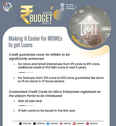Fm said, ""To improve access to credit, the credit guarantee cover will be enhanced. For micro and small enterprises from Rs 5 to Rs 10 crores leading to additional credit of Rs 1.5 Lakh Crores in the next 5 years. For startups, from Rs 10 Crores to Rs 20 Crores with the guarantee fee being moderated to 1% for loans in 27 focus sectors which are important for Aatmanirbhar Bharat. For well-run exporter MSMEs, for term loans up to Rs 20 Crores. Also for the micro-enterprises, we will introduce customised credit cards with a Rs 5 Lkah limit for micro-enterprises registered on Udyam portal."