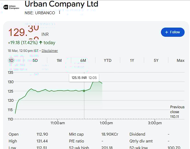 Mumbai: Shares of Urban Company Ltd. saw a sharp rise of around 18 percent on March 18, touching about Rs 130.11. The sudden jump came after a major investment by SBI Mutual Fund (SBI MF), which boosted investor confidence in the company.