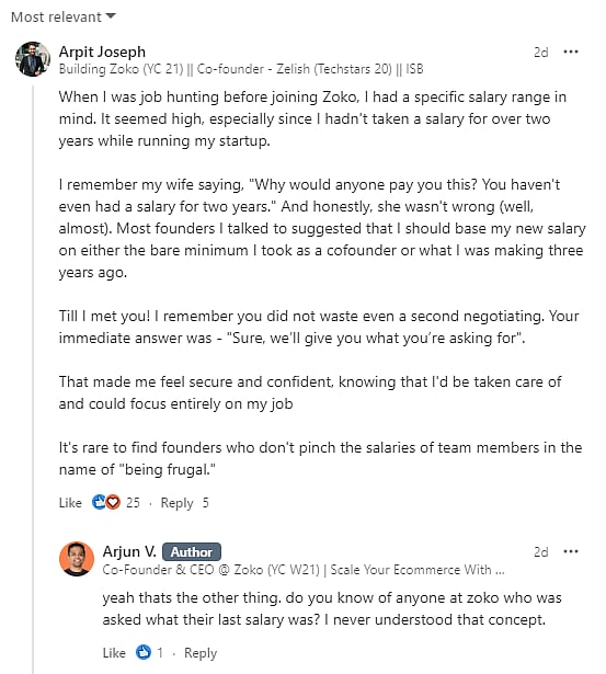 LinkedIn user Arpit Joseph went on to explain his experience, When I was job hunting before joining Zoko, I had a specific salary range in mind. It seemed high, especially since I hadn't taken a salary for over two years while running my startup.