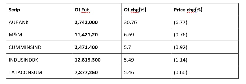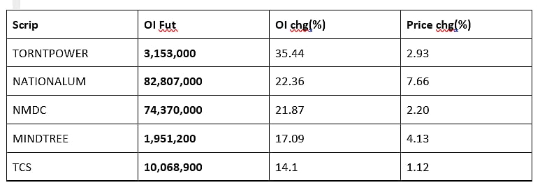 The following stocks saw OI build up with a corresponding increase in price, suggesting a bullish sentiment.