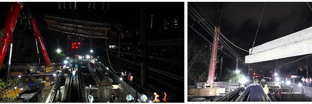 Vineet further stated that the process involved the careful removal of four spans of old steel girders and the installation of 28 Pre-Stressed Concrete (PSC) slabs and 8 retainers were put in after delaunching 8 steel girders. PSC slabs offer significantly higher strength, durability, and load-bearing capacity compared to traditional steel girders. They are more resistant to corrosion, require lower maintenance, and provide improved structural stability, making them especially suitable for heavy suburban rail traffic and challenging weather conditions. Their use enhances overall safety while also enabling smoother and more efficient train operations.