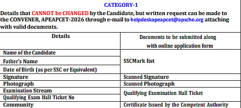 Candidates who have to make corrections to the application can use this window to make any changes. This is also the final edit opportunity for the candidates to make the changes. The AP EAPCET 2026 exam is scheduled for May 12-15 and May 18, 2026. For queries related to AP EAPCET 2026, candidates can email: helpdeskapeapcet@apsche.org