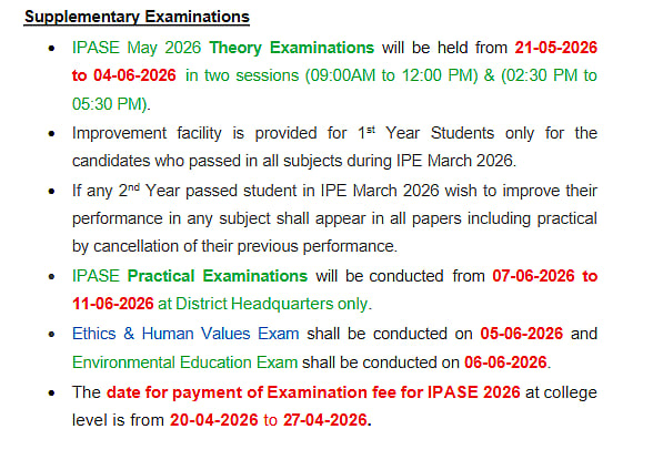 2nd Year Students: If any 2nd Year students who passed in the IPE March 2026 wish to improve their performance in any subject shall appear in all papers, including practical, by cancellation of their previous performance
