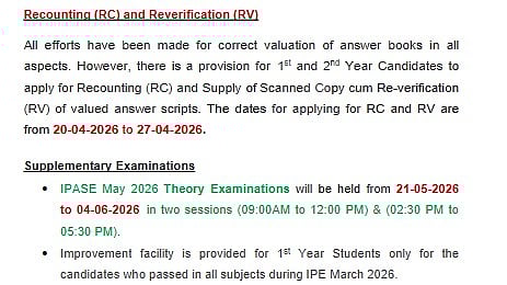 Improvement Facility (1st Year Students): Only for students who passed all subjects in IPE March 2026