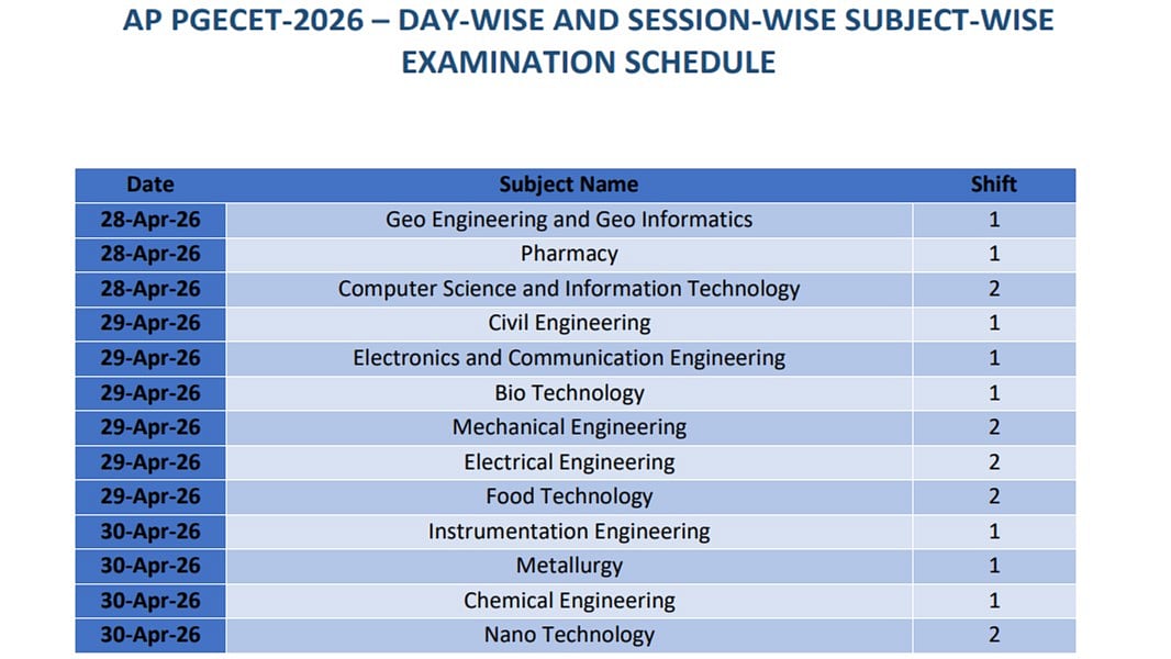 AP PGECET 2026 Admit Card Released: Subject-wise Schedule