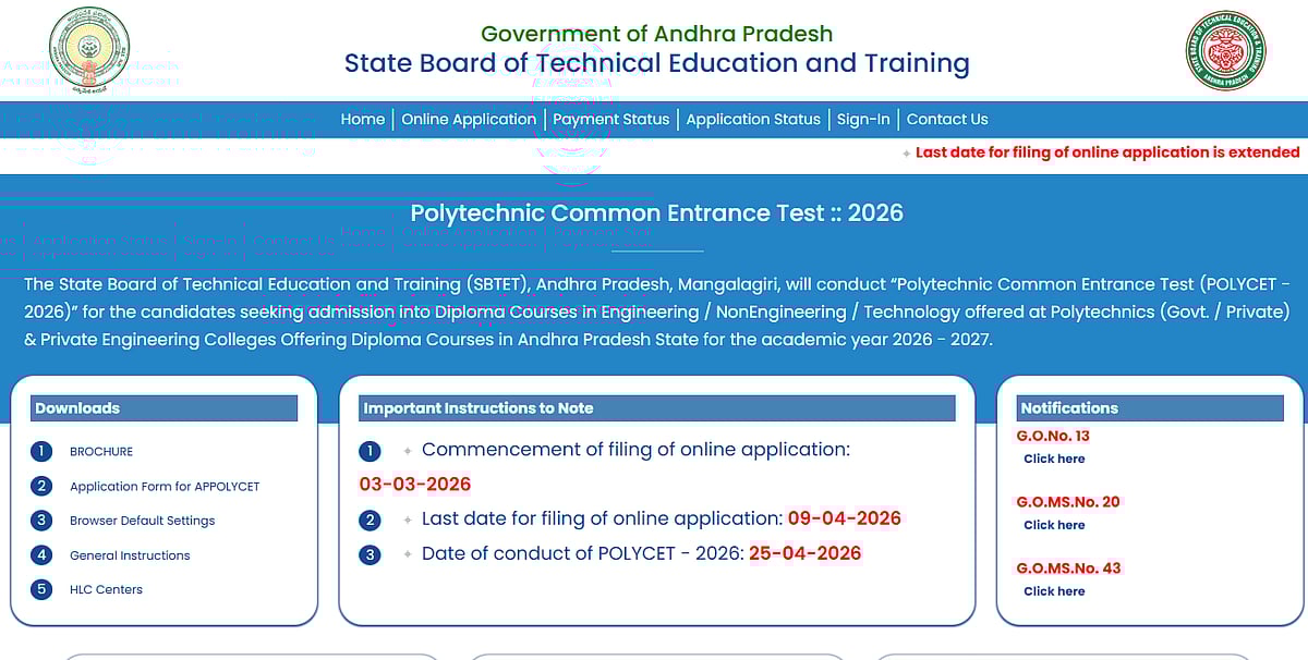 AP POLYCET 2026 Registration: The State Board of Technical Education and Training (SBTET), Andhra Pradesh has released a notification stating that the AP POLYCET 2026 Registration has been Extended to April 9, 2026. Candidates must finish the registration process and show up for the test in order to be admitted to the state's diploma programs.