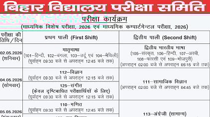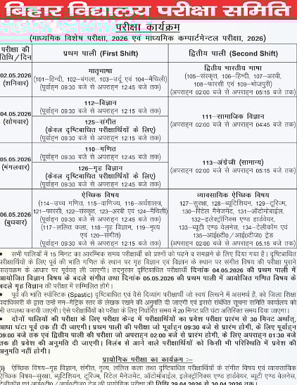 Bihar Board Matric Special & Compartment Exam 2026: The Bihar School Examination Committee has released the examination schedule for the Matric Special Examination, 2026, and the Matric Compartmental Examination, 2026, on social media handles.