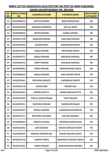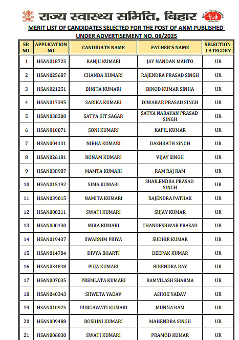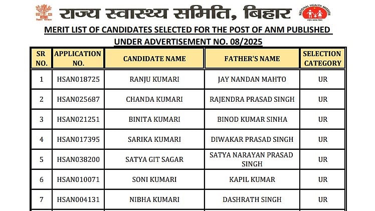 The final selection of candidates to work as ANMs in Bihar's public health sector will result from the successful completion of this process.