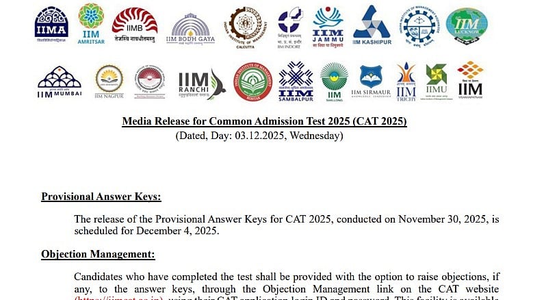CAT 2025 Answer Key: The CAT 2025 answer key objection window will open at 12:00 PM today. By completing an online application form, candidates can voice concerns about the official CAT 2025 answer key. Four days after the CAT 2025 exam, on December 4, 2025, IIM Kozhikode published the preliminary answer key. You can get the CAT response sheet and answer key by logging into the iimcat.ac.in website.