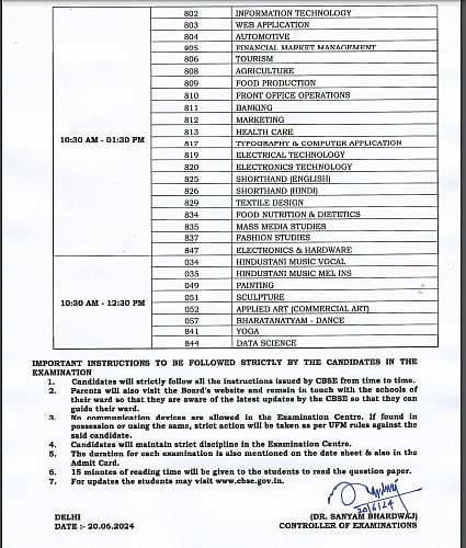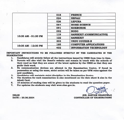 1. Candidates will strictly follow all the instructions issued by CBSE from time to time.