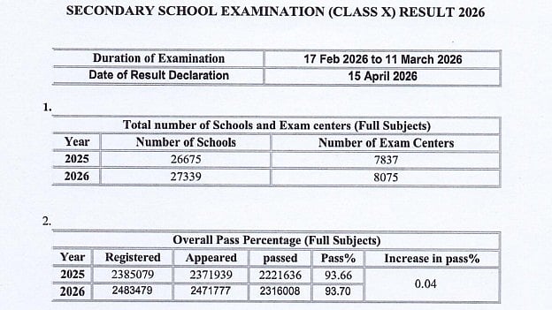 This year, the pass percentage of students in class X is 93.70%, which is better than pass percentage of last year i.e.93.66% of 2025 examination.