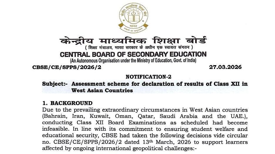 CBSE: In a major move that will impact thousands of students in West Asia countries due to the US-Iran-Israel war. The Central Board of Secondary Education (CBSE) has issued a notification that announces a special assessment scheme for class XII students in West Asian countries, where the board exams were in the middle of the process due to prevailing circumstances.