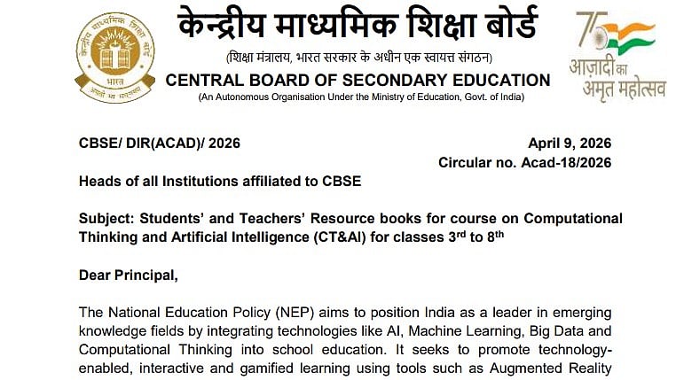 New Delhi: In a move aimed at aligning school education with emerging technologies, the Central Board of Secondary Education (CBSE) has introduced resource books for students and teachers for a new course on Computational Thinking and Artificial Intelligence (CT & AI) for Classes 3 to 8.