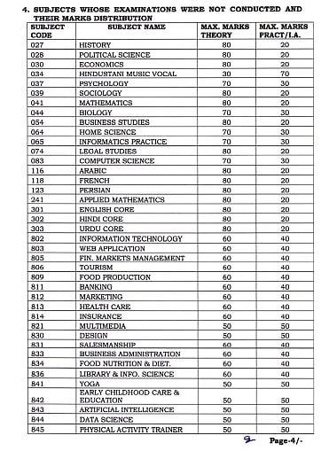 In subjects with 70–80 marks theory papers, the best score among quarterly, half-yearly and pre-board exams will be considered.