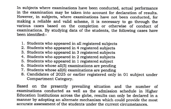 To avoid academic loss, the board introduced a special assessment scheme to evaluate students based on a mix of exams already conducted and internal assessments.