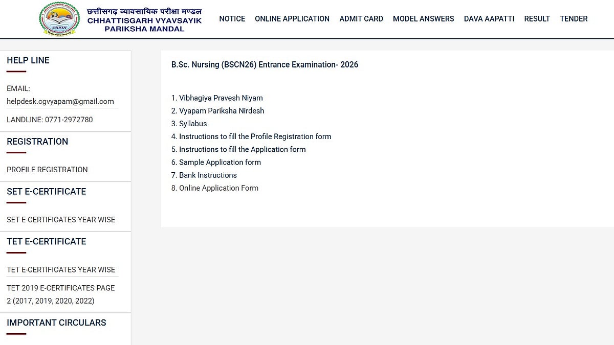 CG BSc Nursing Registration 2026: The Chhattisgarh Professional Examination Board (CG Vyapam) has begun the process of registering candidates for BSc nursing admission in Chhattisgarh. The CG BSc Nursing application form for 2026 is available online at vyapam.cgstate.gov.in. To avoid last-minute issues, eligible candidates should complete their applications before April 27 until 5:00 PM.