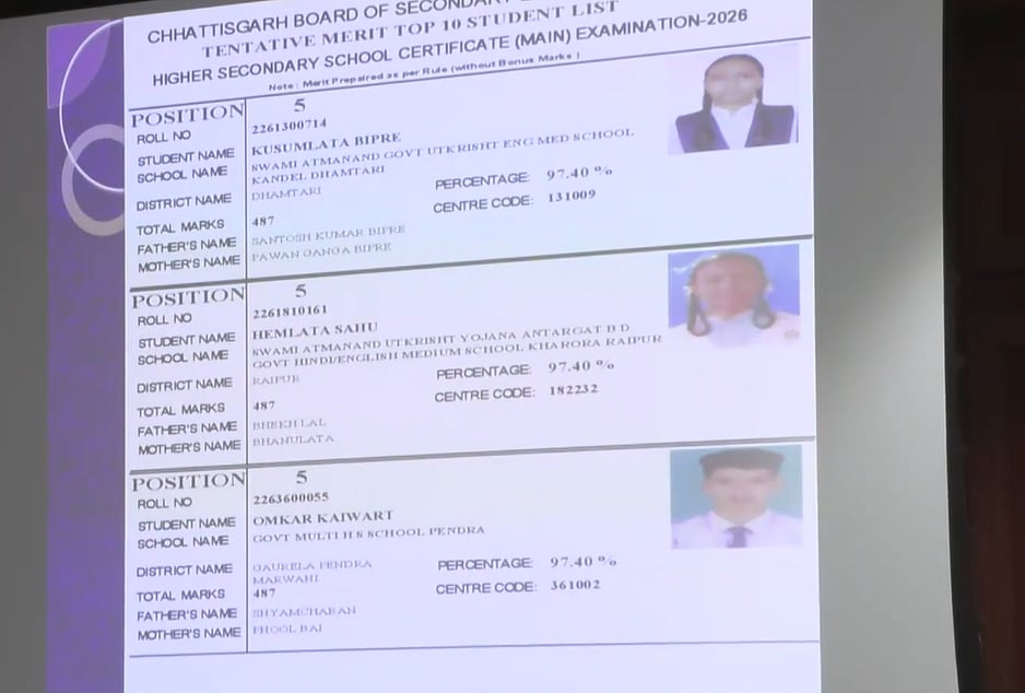 The CGBSE Class 12 results were released in the presence of senior officials and Education Minister Gajendra Yadav. The board also shared pass percentage details and other performance data during the briefing.