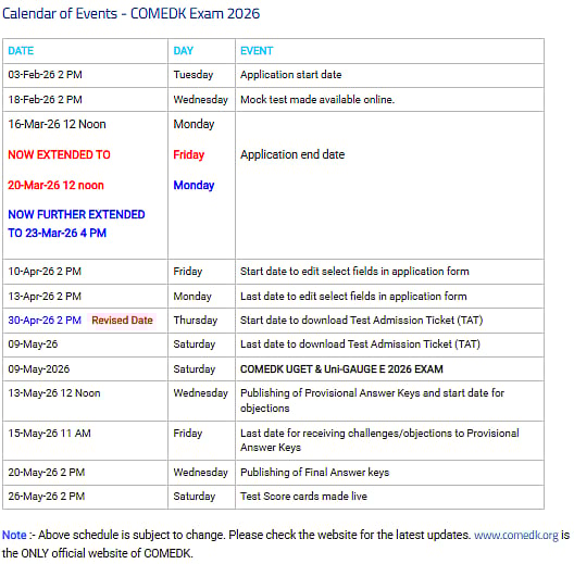 COMEDK UGET 2026 Admit Card: Important Dates