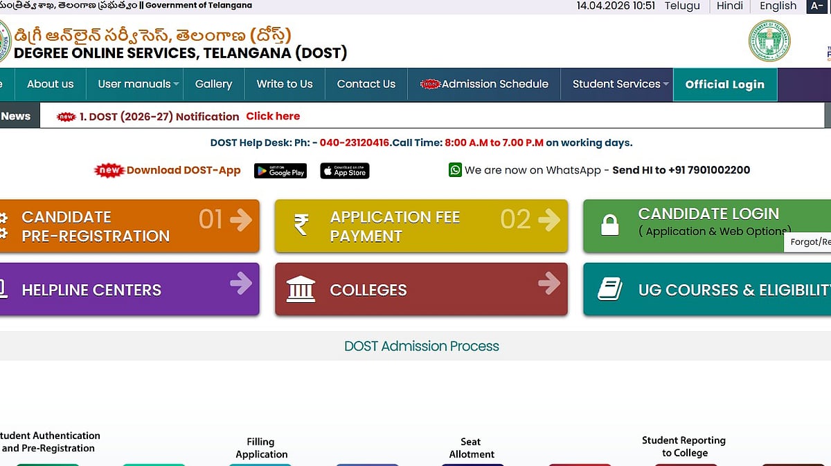 DOST 2026 Registration: The Telangana Council of Higher Education (TGCHE) has officially issued the notification for Degree Online Services Telangana (DOST) 2026 admissions. According to the schedule, Phase I registration for undergraduate courses will begin on April 15, 2026, for the 2026-27 academic year.