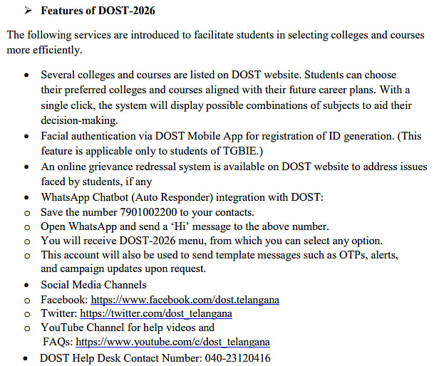 In case of any issues, candidates can reach out to the DOST Help Desk Phone number at 040-23120416 between 8:00 A.M and 7:00 P.M. on working days.