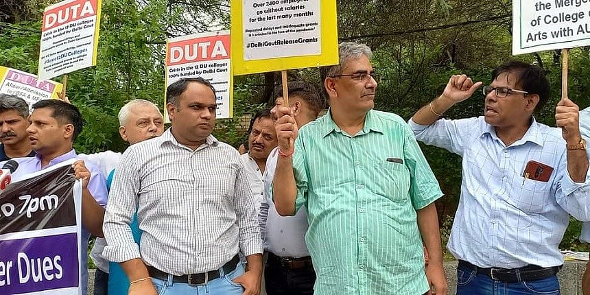 The Delhi University Teachers Association (DUTA) alleges that, due to fund crunch, 12 Delhi university colleges that are funded by the government have been cutting teacher salaries for the past 3-4 years.