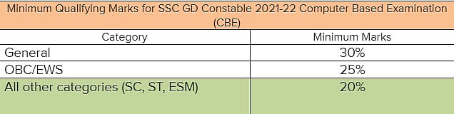 According to Corrigendum No. 3/1/2020-P&P-I dated 24th March 2022, the following cut-off marks have been used to determine eligibility of applicants for selection procedure to the next stage of examination, i.e. PET/PST.