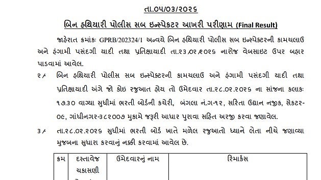 UP SI 2025: The Gujarat Police Recruitment Board has officially released the final selection and waiting list for the Unarmed Police Sub Inspectors on the official website gprb.gujarat.gov.in. Candidates can review the merit and waiting lists for the 472 vacancies.