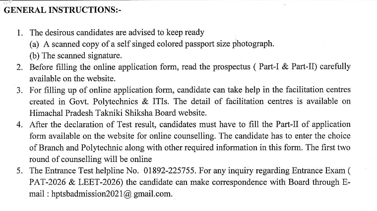 In case of any issues with the application, candidates can reach out the entrance test helpline no 01892-225755 or email at hptsbadmission202l@gmail.com.