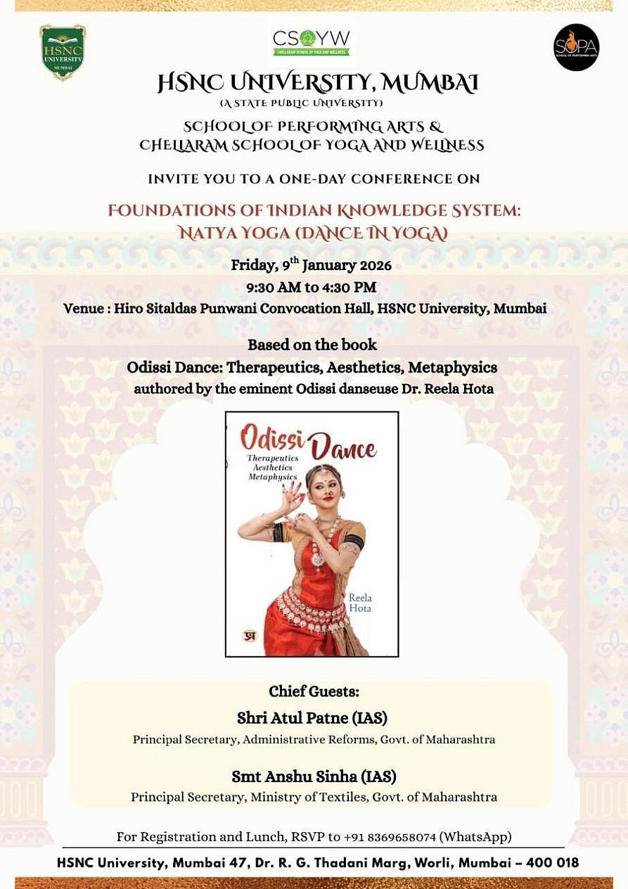 Hyderabad Sind National Collegiate University (HSNC University), a State Public University, is all set to organise a one-day academic and cultural conference titled “Foundations of Indian Knowledge Systems: Natya Yoga (Dance in Yoga)” on Friday, 9th January 2026, at Hiro Sitaldas Punwani Convocation Hall, Worli in Mumbai. The conference is being jointly organised by School of Performing Arts (SOPA) and Chellaram School of Yoga and Wellness (CSOYW).