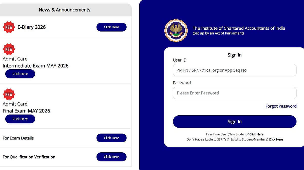 ICAI CA Intermediate and Final Admit Card May 2026: The Institute of Chartered Accountants of India has released the CA Admit Card for the May 2026 Intermediate and Final Examinations. Candidates who registered within the deadline can now access their hall tickets via the official SSP login portal.