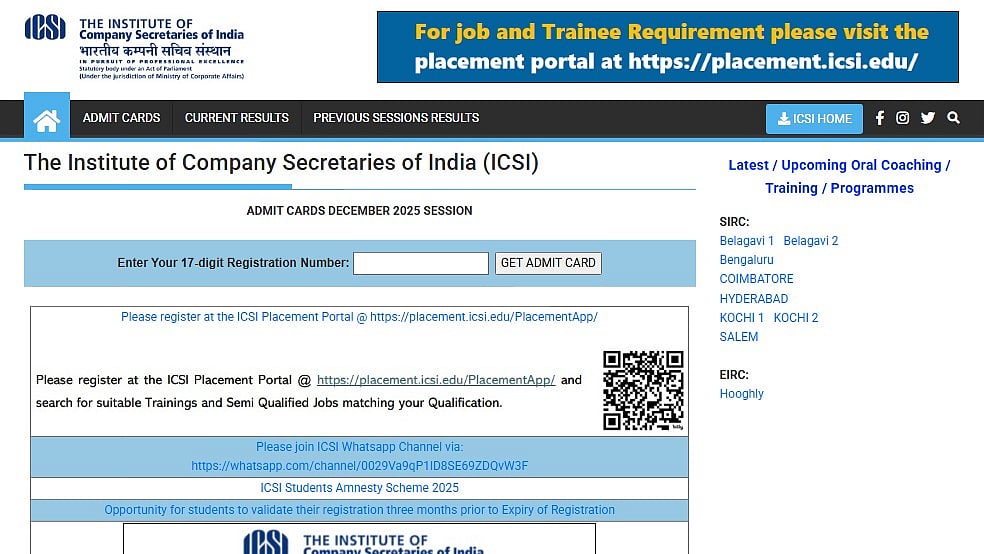 Step 1: Visit the official website at icsi.results.shiksha/admit-cards.