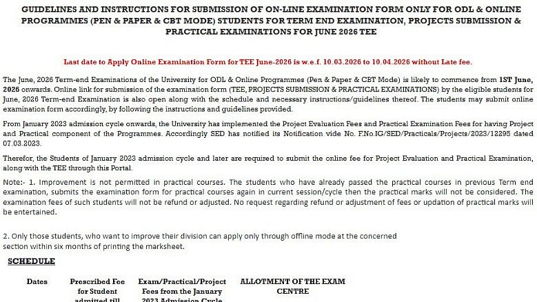 IGNOU June 2025 Registrations: The Indira Gandhi National Open University (IGNOU) has release a notification stating that the IGNOU June Term-End Examination (TEE) 2026 registrations have commenced from today. The last date to register is April 10, 2026, as per the official notification released. Candidates who are eligible can submit their exam forms through the official website, exam.ignou.ac.in.