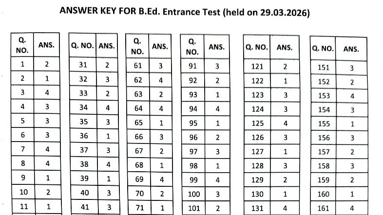 B.Ed Answer Key 2026 – Official Notification: Click Here