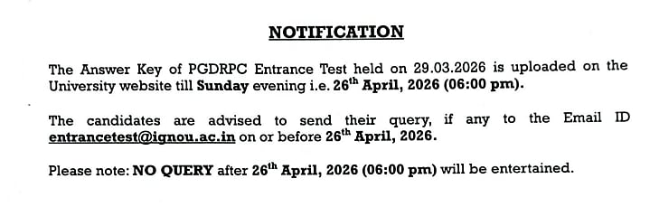 Candidates who have appeared for the IGNOU Examination and are willing to challenge the IGNOU Answer Key 2026 can send their queries through the email ID entrancetest@ignou.ac.in on or before 26th April, 2026.