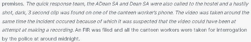 When asked, the Dean of Student Council Affairs at IIT-B said he had nothing further to say besides the official statement. The IIT-B in its official statement explained, "The investigation, including cyber investigation, is being carried out by the Mumbai police. The Institute, as per the initial report, is not aware of any footage being shared from the phones confiscated from the culprit.