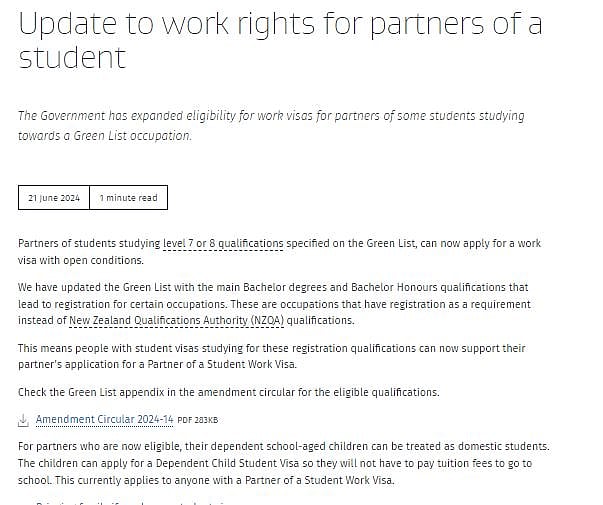 The new policy, which allows international students studying in fields included on the Green List to support their partner’s application for a Partner of a Student Work Visa, was announced on June 21, 2024. This development underscores New Zealand's commitment to attracting international students by offering support for their families.