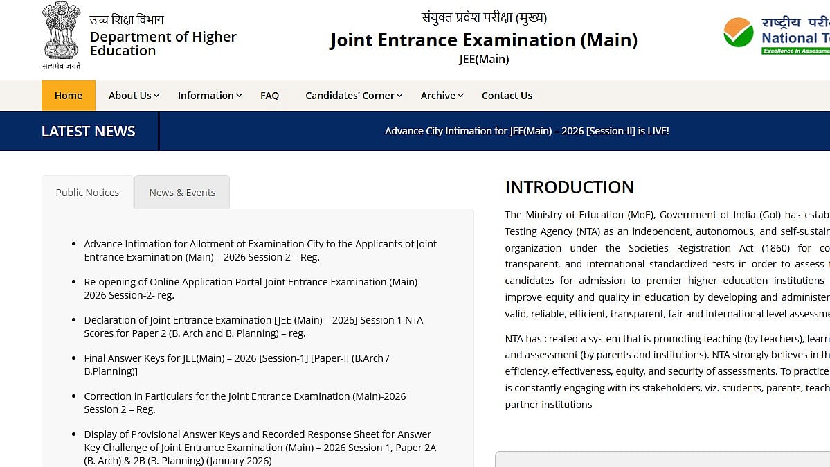 JEE Main 2026 Session 2 Admit Card: The Joint Entrance Examination (JEE) Mains 2026 is conducted by the National Testing Agency (NTA) and is expected to declare the JEE Mains 2026 Session 2 Admit Card soon. As per the official notification, Session 2 exams will be held between April 1st and April 10th, 2026.