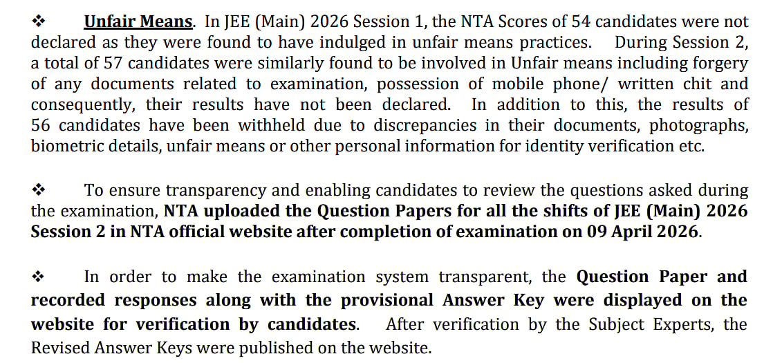 JEE Main 2026 Result: Action Against Unfair Practices