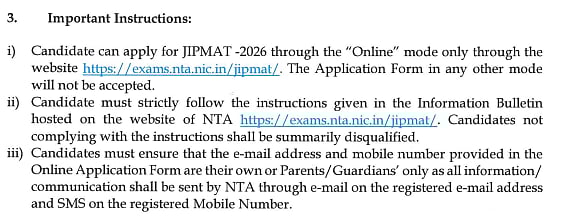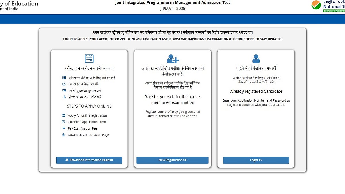 According to a notice issued on April 16, 2026, the application process for JIPMAT 2026 has begun entirely online. Candidates can apply through the official website, https://exams.nta.nic.in/jipmat. The agency does not accept offline applications.