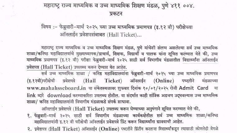 According to the official notice, "Students of all departmental boards are hereby notified that the Higher Secondary Certificate (12th) Examination for February-March 2025 is being made available to the students of all Higher Secondary Schools/Junior Colleges afflicted to the Maharashtra State Board of Secondary and Higher Secondary Education, Pune."
